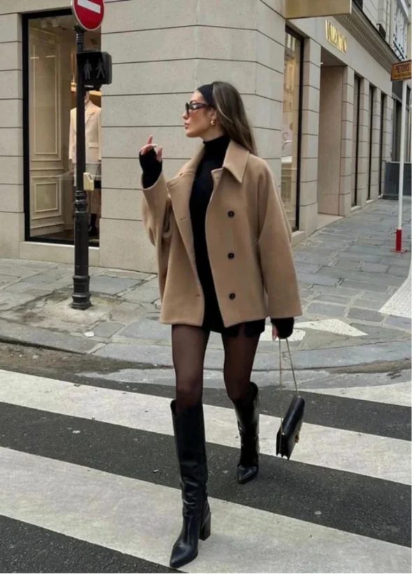 - Style with knee-high boots or ankle booties to elevate your cold-weather outfit.